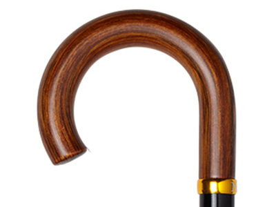 Rondhaak handvat | De Rondhaak behoort ook tot de oudste handvatvormen. Hij wordt veel gebruikt door toeristen, maar geeft niet heel veel steun. De ronde vorm is wel handig: daar kun je de stok mee ophangen aan een haak. Past net zo goed in de linkerhand als de rechter. Verkrijgbaar vanaf ongeveer € 45,- (Ninee en Wandelstok). |
